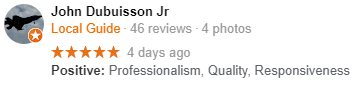 Highly recommend to everyone.” ~John Dubuisson Jr